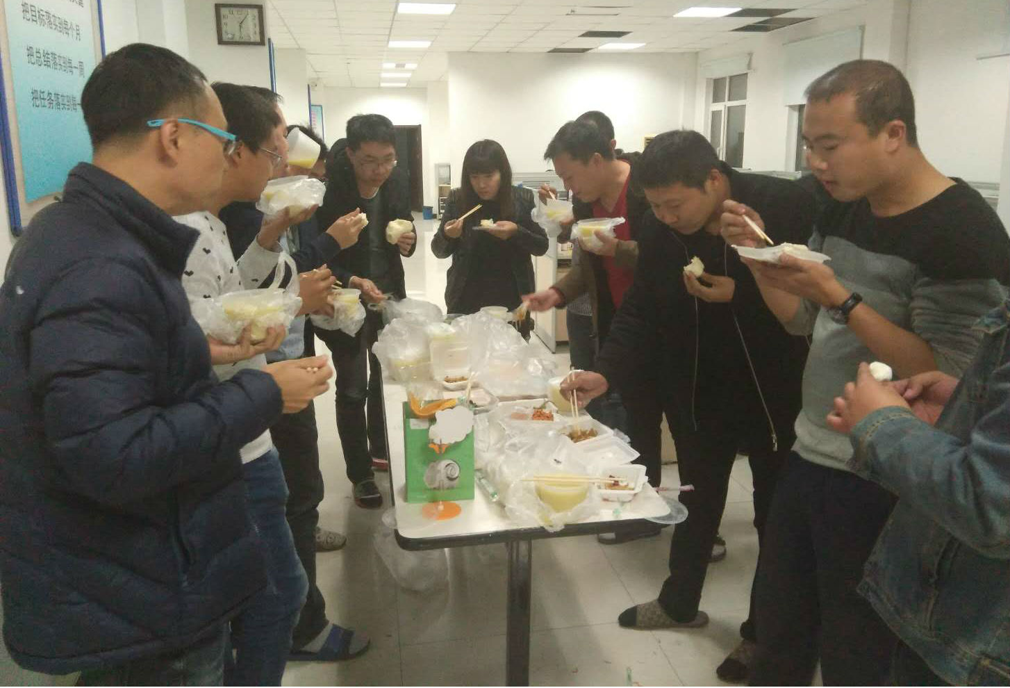 為了抓緊時間趕進度,大家顧不得吃一頓像樣的晚餐。
